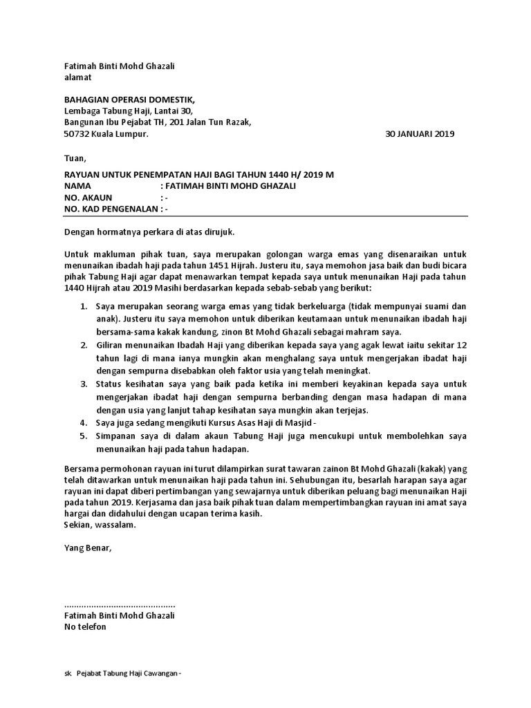 Surat Rayuan Tabung Haji 2019 Ppdbsolon